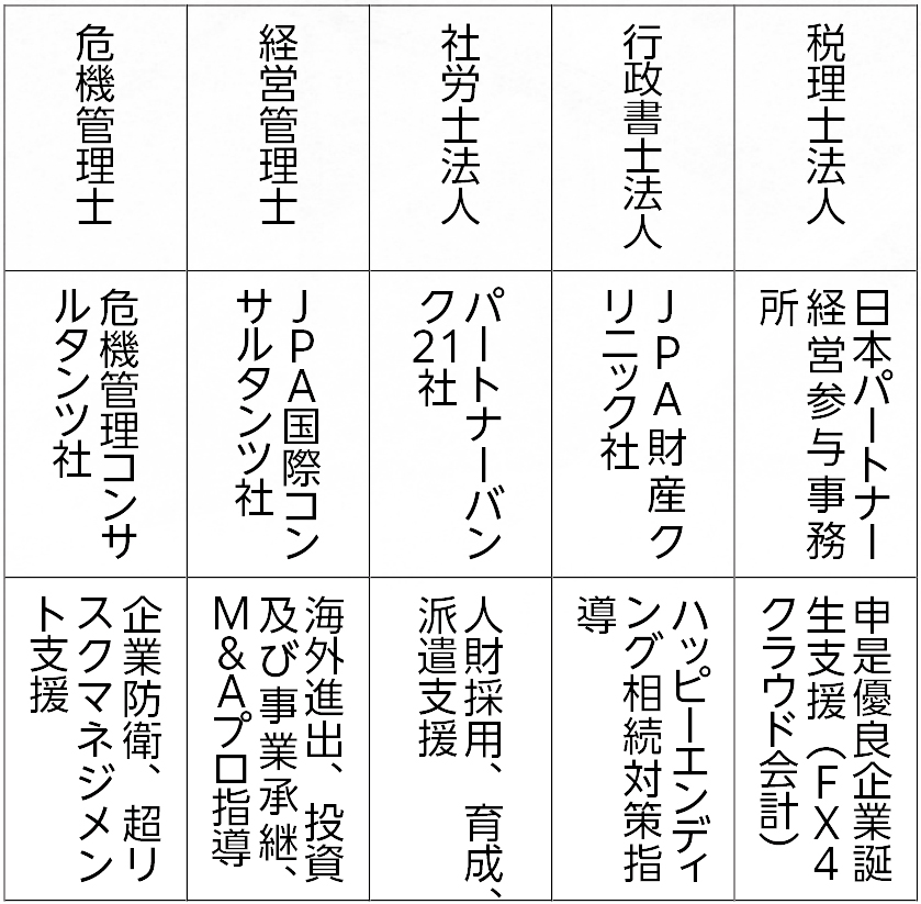令和元年より、JPA総研グループは会計事務所から「経営参与事務所」へと脱皮し、JPA総研経営参与グループとして変身、成長、発展を目指し、力強く推進しています。
