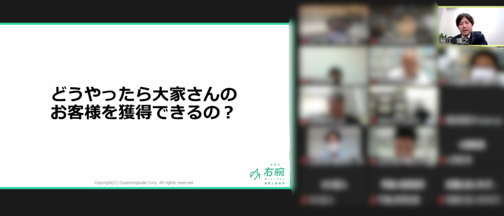 ※ZOOMミーティングで双方顔出しでディスカッションでの開催となります。