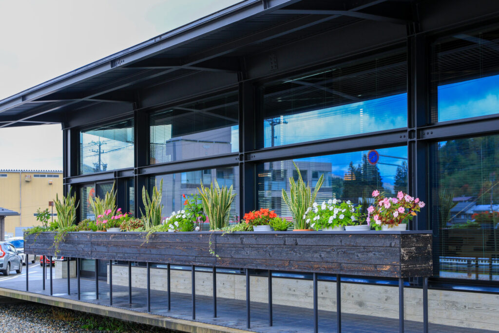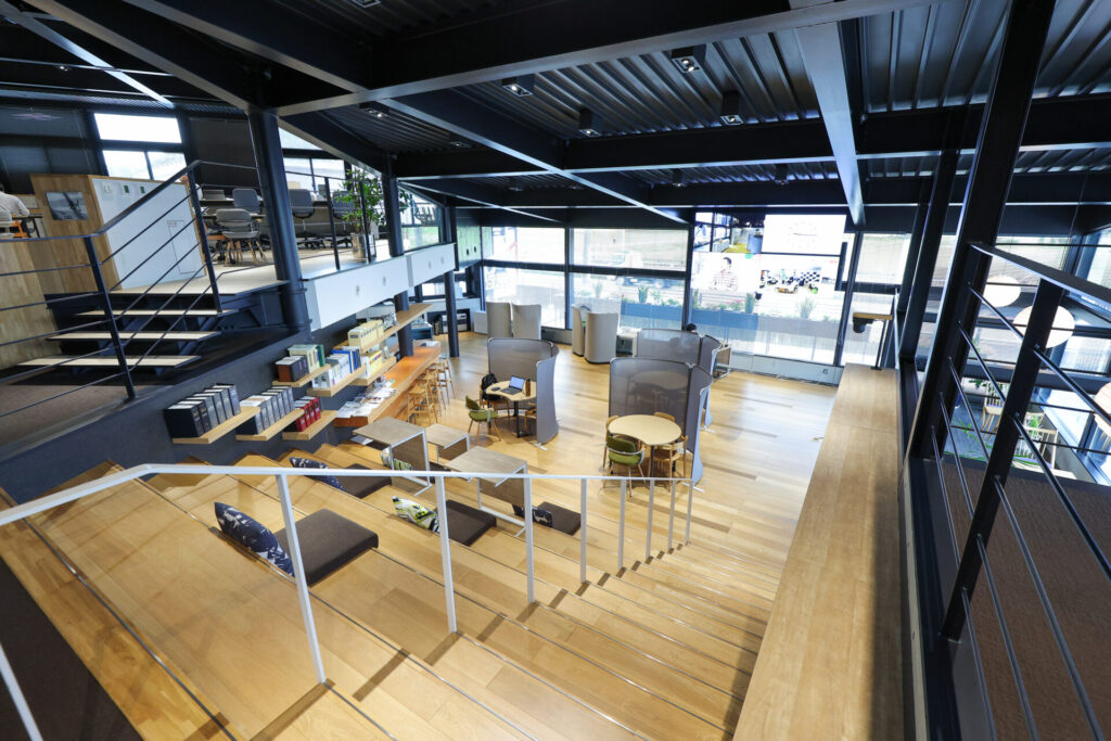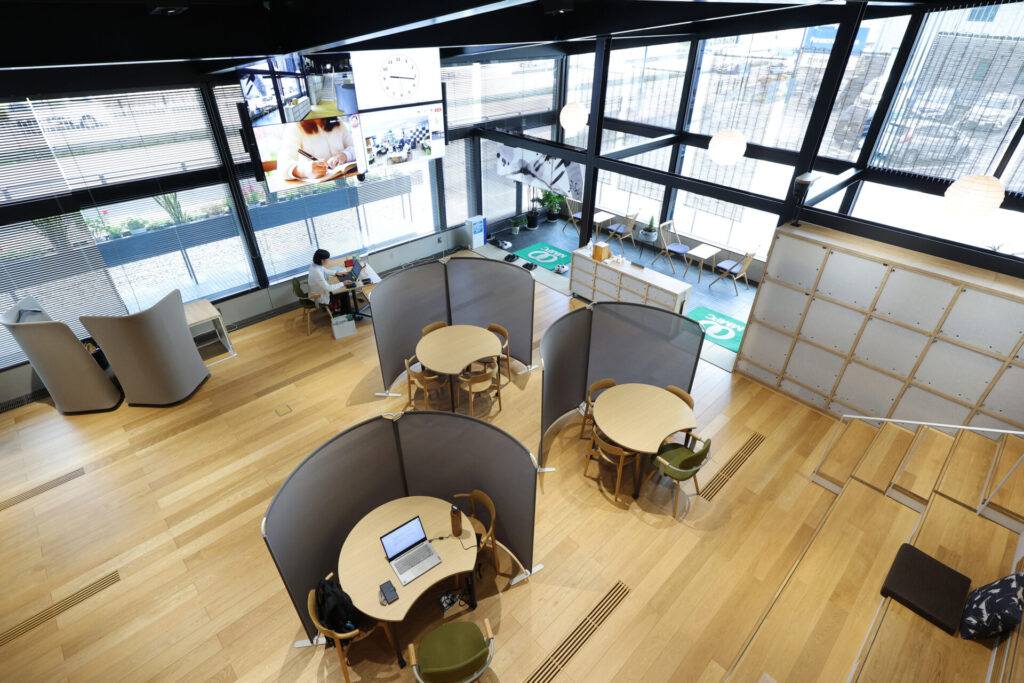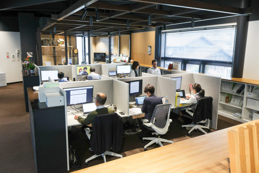 2021年に建て替えられた高山オフィスは「studio mirai」と名付けられ、クラウド化によるペーパーレス、フリーアドレス、リモートワーク、エリアの区分けによって大きく業務効率が改善されました。