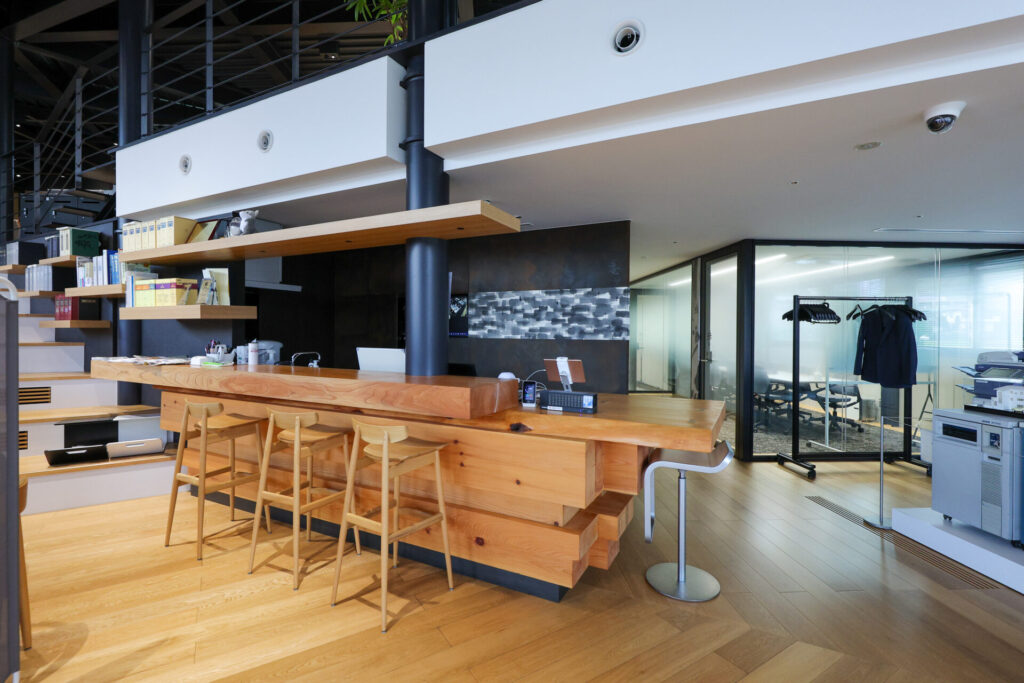 これにより、未来型のオフィスで欠けがちなコミュニケーションについてもより多く対話が増え、そこからアイデアが生まれる工夫もされております。また、訪れていただくお客様とのコミュニケーションもより充実した、スタジオ形式のオフィスは必見です。